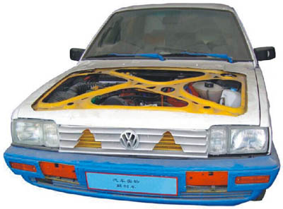 多功能解剖車選用桑塔納2000為基礎,可容易地看見發(fā)動機艙、車身側圍的構造結構、鋼板的厚度及獨立懸掛的結構,甚至車輪的輪轂及輪胎的橫截面。此外,車內方向盤、排擋桿、手剎、安全帶固定裝置及安全帶卷等平時都被包裹嚴實的部件也被特別地一剖為二,內部工藝精度、構造清晰呈現(xiàn),能夠展示汽車各總成裝置以及各附件位置。